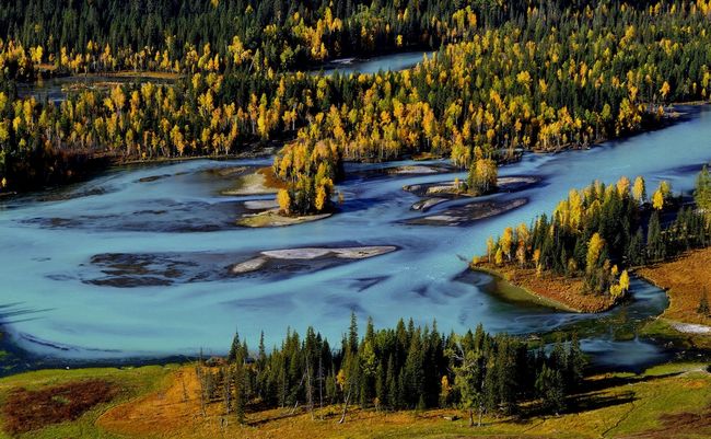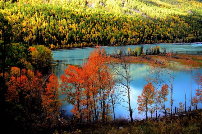 春夏秋冬的喀纳斯,各有各的色彩,从上帝的后花园,到绚丽的调色板,色彩更迭让人眼花缭乱。</p>