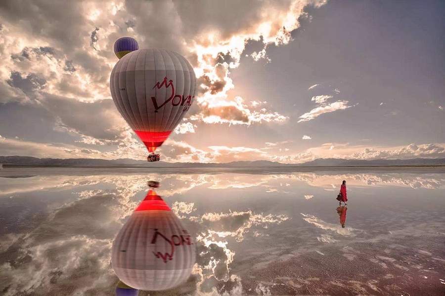 茶卡盐湖也叫茶卡或达布逊淖尔,“茶卡”是藏语,意即盐池,也就是青盐的海;“达布逊淖尔”是蒙古语,也是盐湖之意。在这里,湖天已经没有界限,天地辽阔,一如我的胸膛,任何热爱你的人,都可以在纯净的天空自由行走,感悟你的大美和空灵