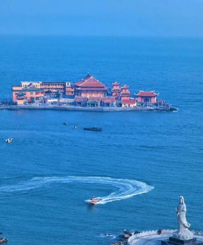 寺在海上,庙驾蛟龙。这里是你可以感受佛教的宏大气度与大海的海纳百川气势的地方