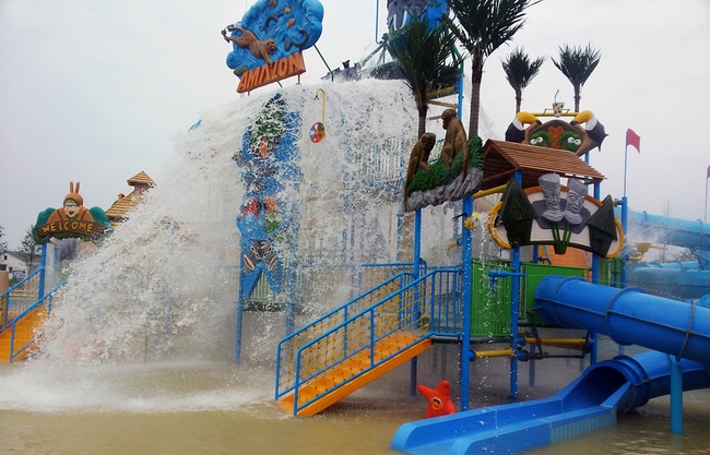 超级大喇叭、惊险度极高的大滑板、美洲豹虎视眈眈的亚马逊风情水寨、风驰电掣的急速滑道、优美波浪般的彩虹滑道