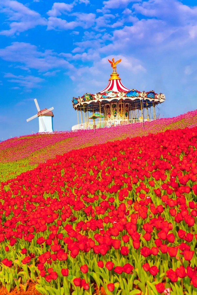 游人徜徉在这缤纷的醉人花海,尽情享受荷兰风情最浪漫的感动