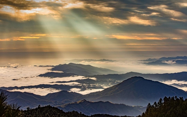 阳光盘旋云熙,大地无限美好