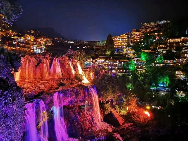 12:30分集合前往挂在瀑布上的千年古镇、“湘西四大名镇”、4A【芙蓉镇】,原名王村,因刘晓庆电影《芙蓉镇》而改名,拥有两千多年历史、一条宏伟瀑布穿梭其中,景观秀丽、民族风情浓郁、古巷古风犹存,主要景点有:溪州铜柱、石板街、大瀑布(高60米、宽40米)、土司行宫(飞水寨)、土人居穴遗址等;放下行李后,开始拍摄落日,然后拍夜景,请自备晚餐或干粮,我们全程拍摄夜景。或在【酉水河码头】发呆、凹造型,或自由晃荡【五里石板街】,品尝米豆腐、桂花鱼、螺丝肉、姜糖;晚上在瀑布边觅一茶馆,看彩色的灯光射入瀑布之中、挂在吊脚楼之上、悬在河道两旁。不过,要记得早点回酒店养精蓄锐哦,餐:无,住:芙蓉镇