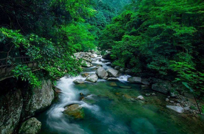 树木繁茂、间或蝉鸣,还有风吹过叶子、流水击打石头的交响乐