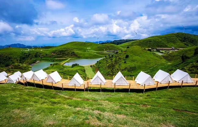 早餐后,乘车前往【仰天湖草原】(约1个半小时),仰天湖是一个高山草原,为第四纪冰川期馈赠的一个死火山口,其自然水泊面积20余亩,海拔高度1350米,是悬系于长江、珠江分水线与京珠高速十字交点旁的一颗璀璨明珠。亦为自由旅人作家誉为"地球上(北江之源)的一滴眼泪。被网友们称为“南方的呼伦贝尔大草原”四周草苔遍野,苇荡丛生,高耸入云的“大风车”沿着山脊蜿蜒数百公里,犹如一条巨龙腾空远去,蔚为壮观。