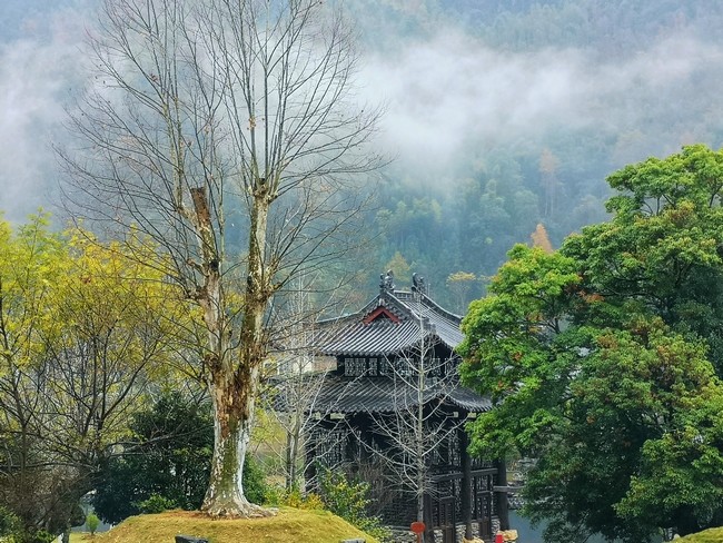 初冬的山谷,色彩斑斓,始建于唐朝的千年古寺,静守湖光山色;大山深处的怀抱里,有千年古银杏的小村,一池碧水的民宿,正是旅拍的好地方
