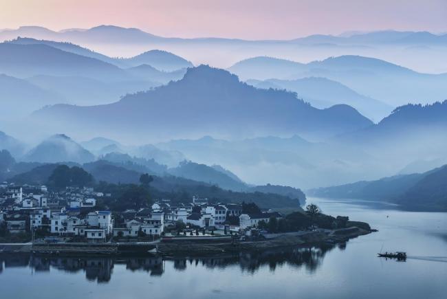 徽派古民居点缀在青山绿水之间,素有“东方多瑙河之称”的新安江穿行而过
