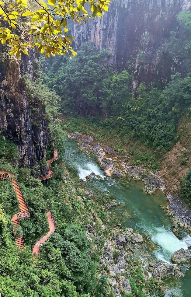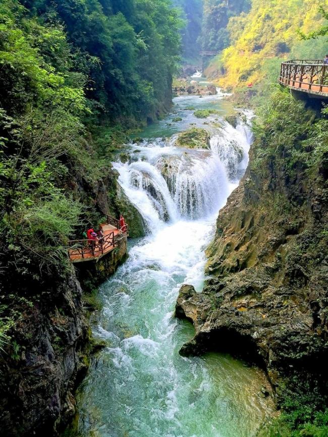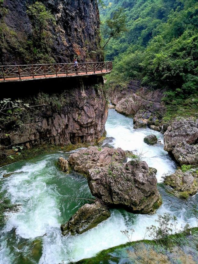 古苗河大峡谷蜿蜒十余公里,两岸山峰耸峙,一路风景殊绝